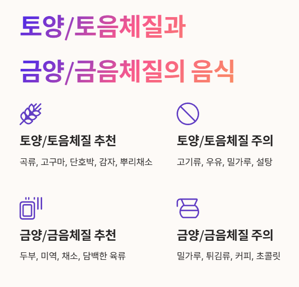 토양체질 / 토음체질 / 금양체질 / 금음체질 음식