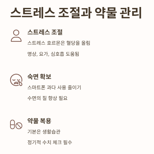 • 약물은 혈당 조절에 도움을 주지만, 기본은 생활습관