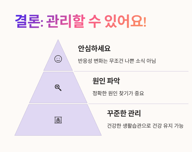 ✅ TIP: 반응성 변화는 대부분 자연 회복되므로 너무 걱정하지 말고, 의사의 조언에 따라 차근차근 관리하세요!