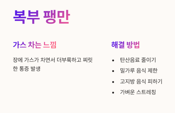 - 가벼운 스트레칭이나 산책으로 가스 배출 도움