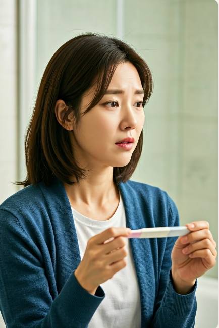 A. 임신 테스트 양성인데 생리처럼 출혈이 있고, 복부 통증, 어지럼증이 있다면 자궁외임신을 의심해야 해요.
