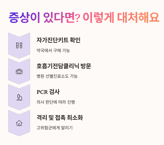 - 자가진단키트로 1차 확인 (약국 구매 가능)